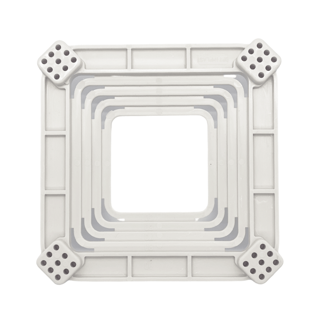 Универсальные квадратные платформы отлично подходят в ситуациях, когда на одном объекте большое количество точечных светильников разных диаметров.