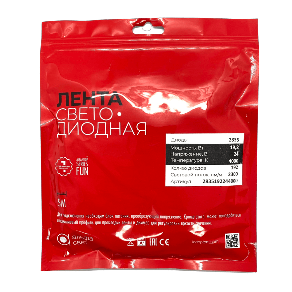 Светодиодная лента ALFA 19.2w/24v/4000k192led/2300lm/10mm