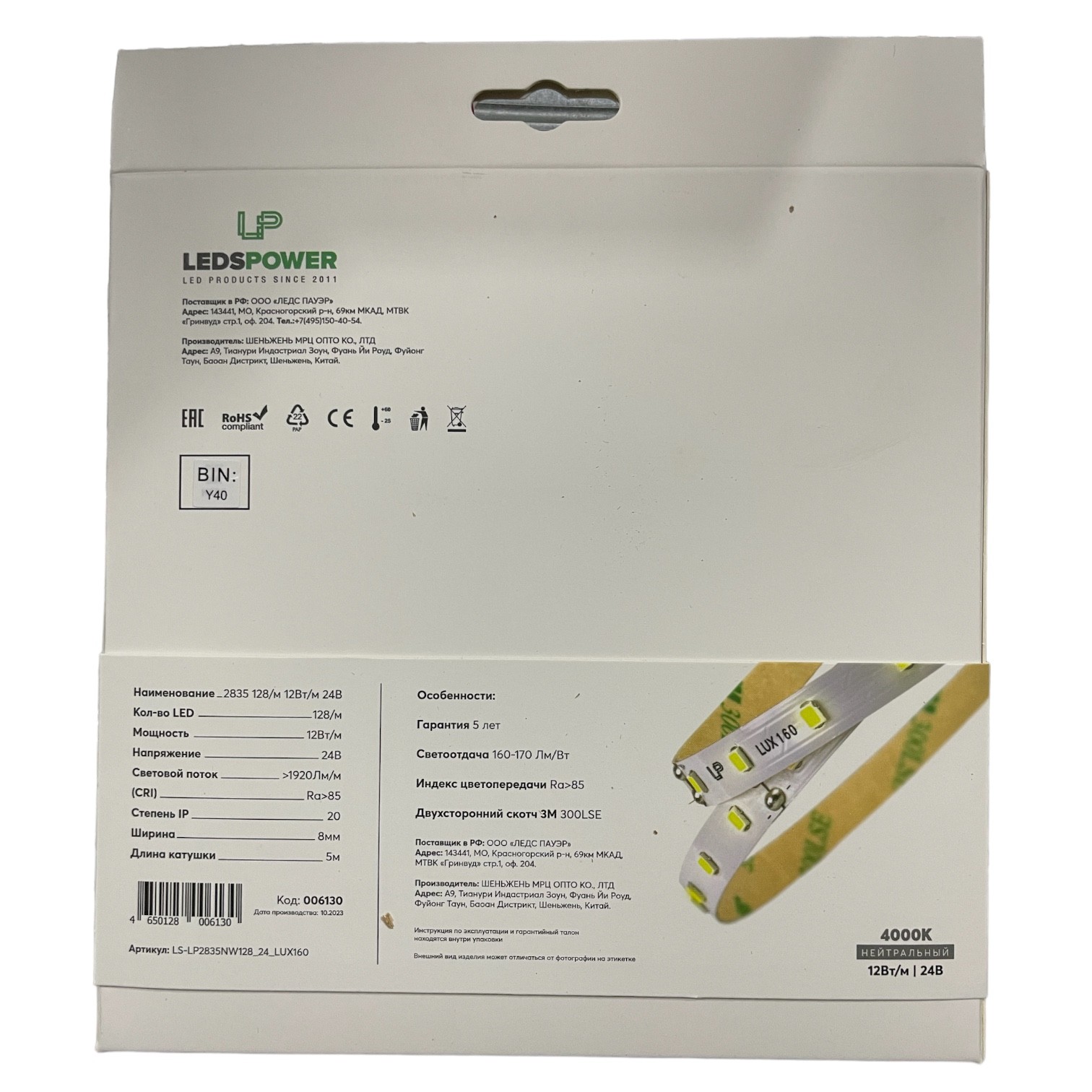 Индекс цветопередачи Ra>80, высококачественный скотч, единый BIN, эффективность до 1560Лм, двухслойная подложка из 100% меди.