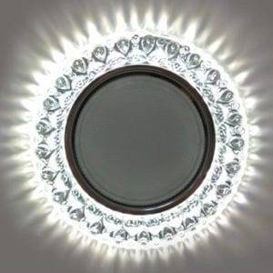 Помимо основной лампы, светильники имеют подсветку оправы светодиодной лентой. Свет ленты, проходя через полупрозрачную оправу, создает интересный световой узор на потолке. Особенно это актуально для глянцевых и однотонных потолков. В комплекте со светильником идет адаптер для подсветки. Светильник можно подключать таким образом, чтобы подсветку включать , как вместе с лампой, так и отдельно.