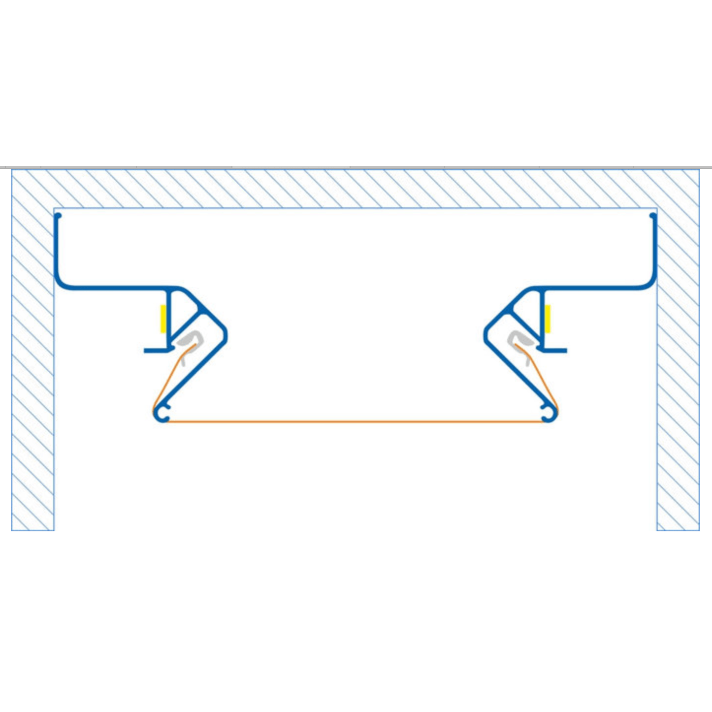 Белый стеновой парящий профиль Flexy FLY 01 для натяжных потолков с гарпунной системой крепления полотна. С полкой для светодиодной ленты. Без светорассеивающей вставки.