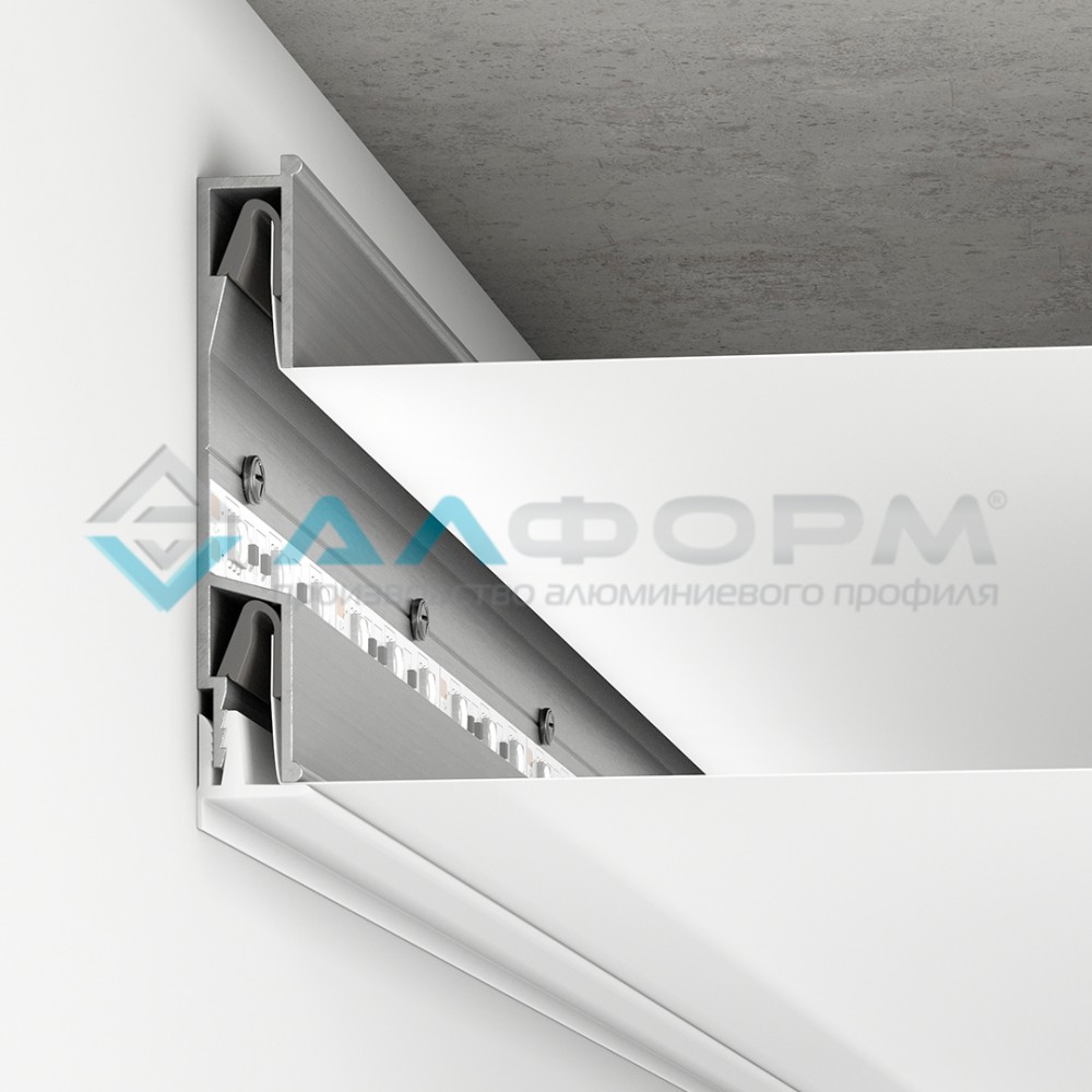 Профиль предназначен для изготовления конструкций по технологии 3Д. Изготовлен из алюминия, отлично выдерживает тяжёлый вес полотна, сложные многоярусные конструкции, обеспечивающие задуманный эффект. Ткань плотно входит в пазы, надёжно держит его. Жёсткость несущего каркаса делает возможным защиту от затопления. Не имеют ограничений по дизайну, сложности проекта, любых криволинейных помещений. Длина 2,5 метра.