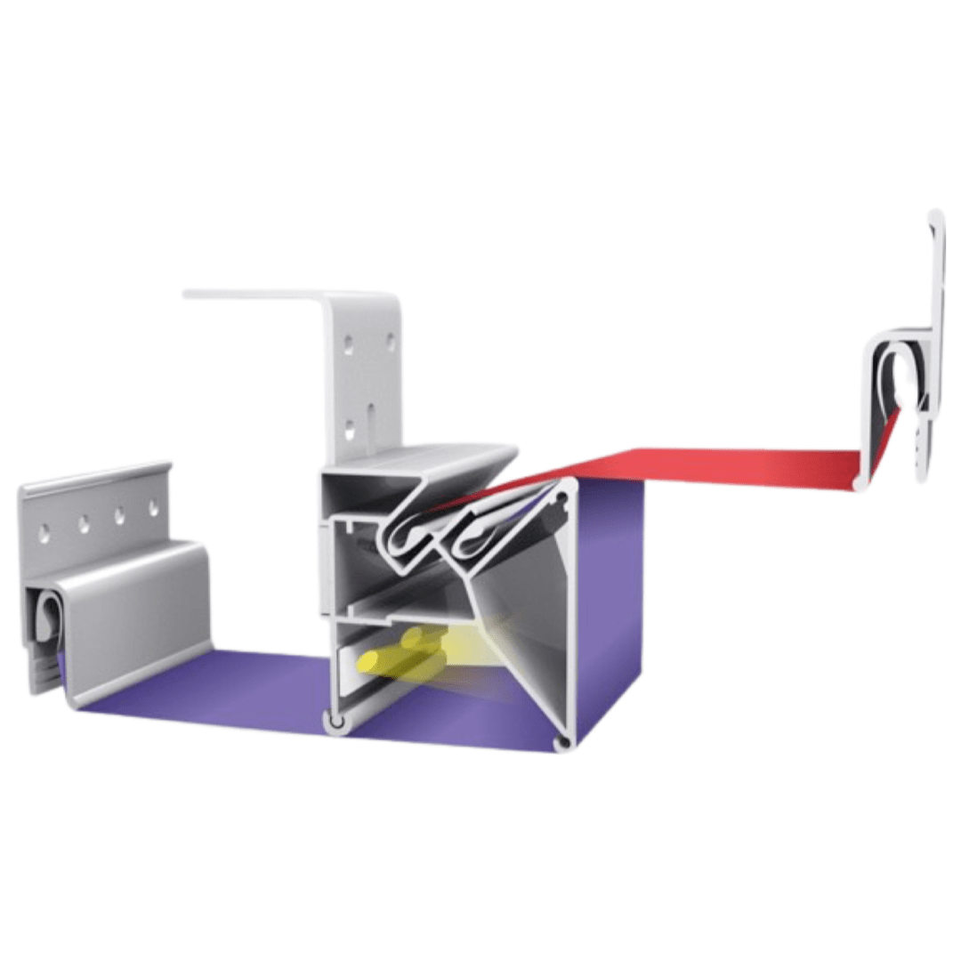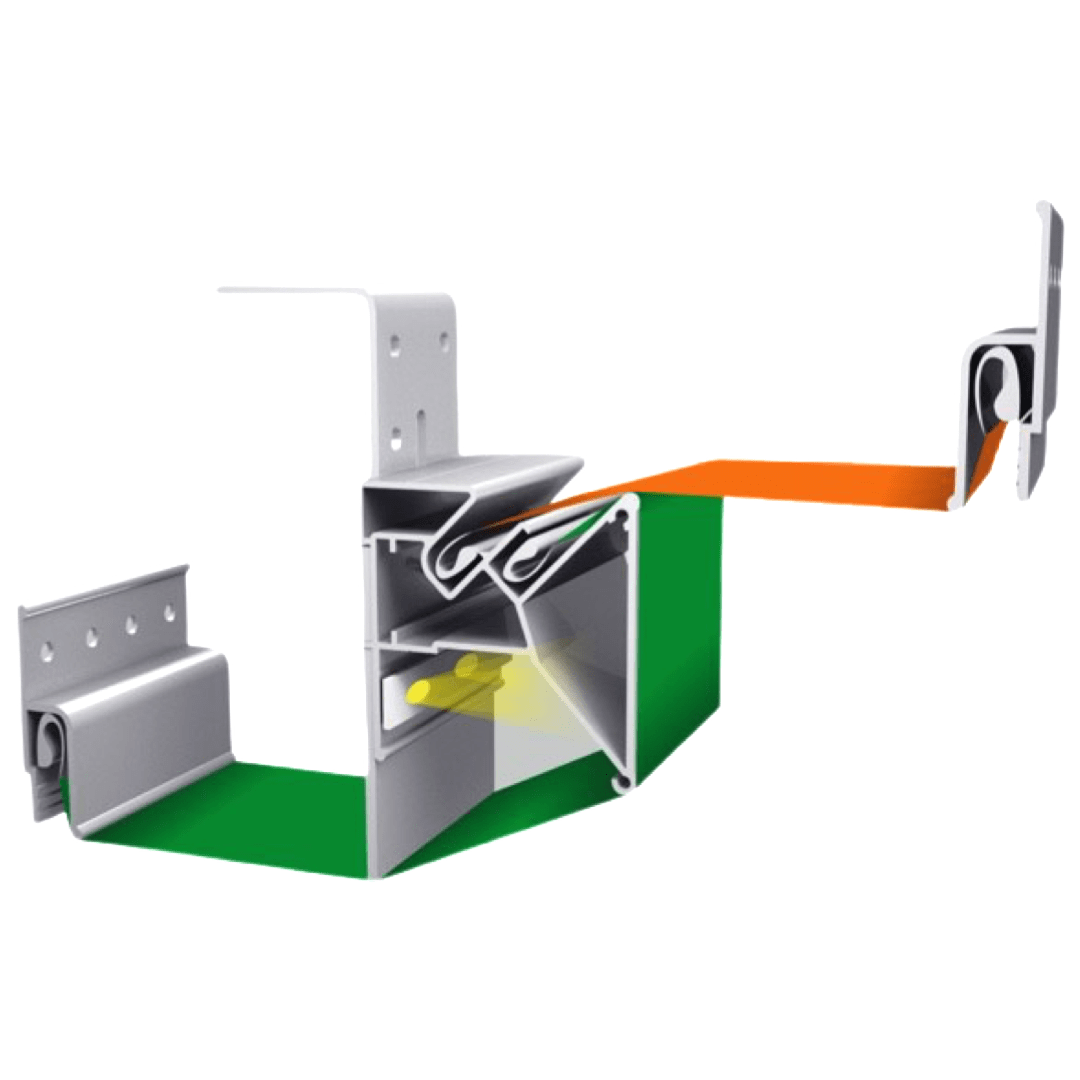 Профиль ПФ-1608 контурно-бесщелевой (FUSION 02) для многоуровневых натяжных потолков с гарпунной системой крепления полотна. С бесщелевым примыканием полотен. С полкой для светодиодной ленты. В данном профиле есть возможность изменять угол наклона с помощью бандажной ленты, которая крепится на задней стенке профиля. Очень часто используется для изготовления светильников, благодаря изменению угла наклона подсветки.