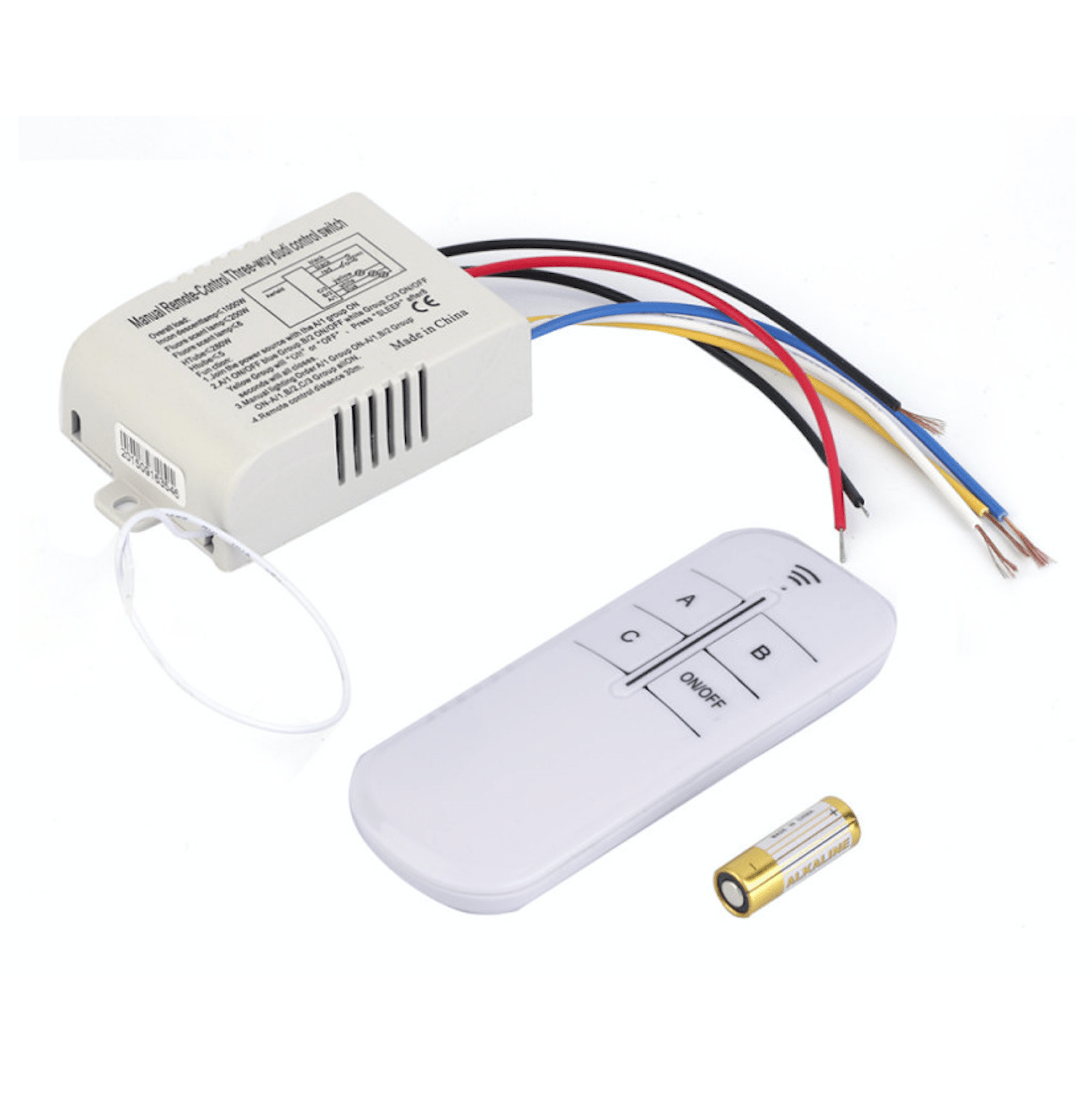 Дистанционный выключатель позволяет управлять освещением в помещении на расстоянии с помощью радиосигнала. Он состоит из приёмного блока и пульта дистанционного управления. Блок приемника соединяется со световыми приборами, а пульт позволяет управлять блоком на расстоянии с помощью радиосигнала. Дистанционный выключатель имеет 2 канала, на каждый из которых можно подключить только часть осветительных приборов в помещении и включать эти части с помощью пульта раздельно.